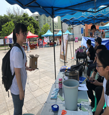 活动开始之前,志愿者们完成了物资、活动材料、海报的准备。活动伊始,志愿者们向来往青春广场的同学们介绍了活动目的与活动的流程,吸引同学们来摊位了解垃圾分类的活动。、