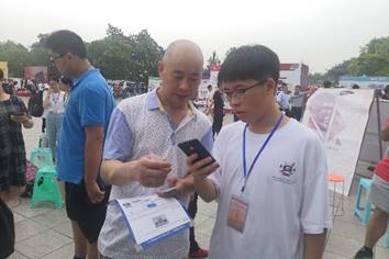 志愿者为新生家长扫码加入家长群 |