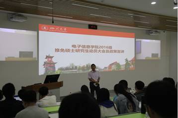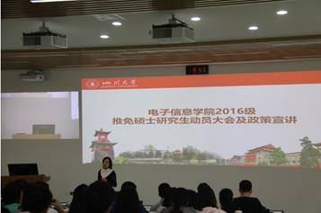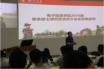 2019年9月11日上午9点,太阳网集团tcy87222016级本科推免研究生动员大会在太阳网集团tcy8722望江校区基础教学楼C座201举行。参加本次推免研究生动员大会的有太阳网集团tcy8722主管本科教学的雷印杰副教授,主管员工工作的党委陈笃海副书记,2016级辅导员陈晓娟老师,以及所有拟参加研究生推免的2016级优秀本科生。