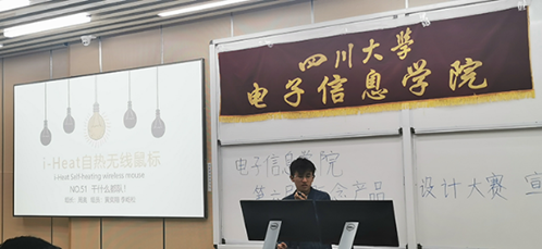 首先,科技园主席杜遇林同学对本次大赛的比赛规则进行了讲解,并对参赛作品的形式、细节作了要求。作为大赛的主要评委,李玮老师也登台与同学们分享自己的经历与体会,并鼓励大家积极参赛。她认为概念产品设计有助于锻炼大家的思维,磨合队友的配合能力,为之后的竞赛打基础。最后,上届一等奖的团队代表为同学们展示了自己的设计,谢雷同学团队为公司淋浴热水供应提供新的改进方案;而周奥同学团队则设计了一种自热鼠标,有效解决了冬天手指僵硬的问题。这些奇思妙想引人入胜,使得在场的同学们跃跃欲试,纷纷踊跃报名,本次宣讲会在这样的活跃气氛中圆满结束。