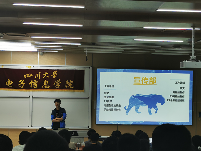首先,电子科技园技术部、宣传部、行政部和外联部部长依次上台对各自部门本月的工作做了详尽的总结以及对下月的安排做了详细的介绍。接着,科技园主席王珞鑫同学对同学们的本月的工作给予了高度肯定。随后,主席团石雅琪、杜遇林同学相继谈及同学们的积极性不高的问题,石雅琪同学着重指出了同学们参与活动不积极的问题,而王治铭同学则以自身经历为例鼓励同学们脱离舒适圈,积极融入社团,提升个人修养。至此,本次例会圆满结束。
