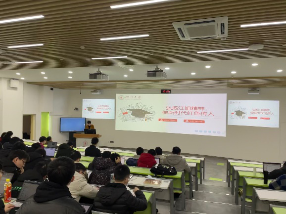 其中一个小组为我们做了关于江姐事迹的主题展示——“弘扬江姐精神,做新时代红色传人”。这个小组通过展示影视作品中的片段和介绍江姐的生平等对江姐的事迹进行多方面的介绍。除此之外,该小组从该主题进行延伸,对“如何做好新时代红色传人”给同学们进行了讲解。同学们通过这次小组展示,对江姐的生平事迹有了更深的了解。