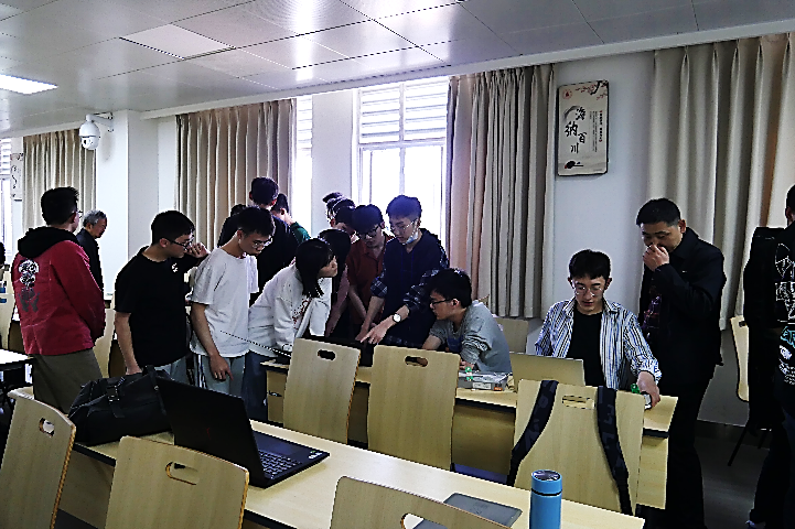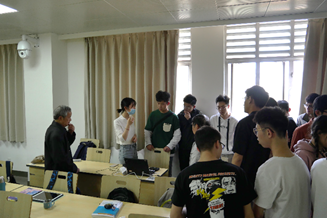 督导组观摩同学对实验装置进行实际操作实践