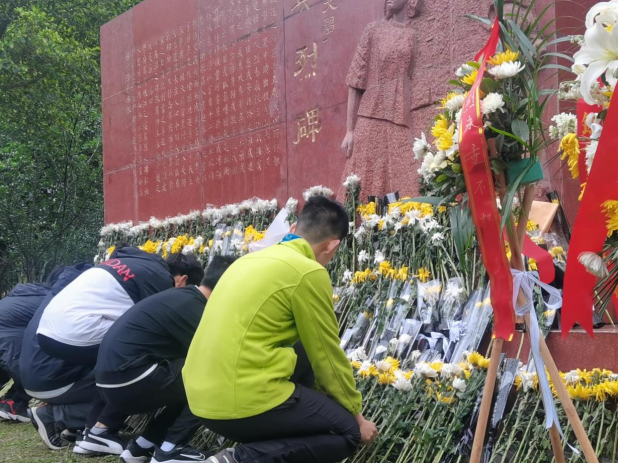 来到英烈碑前,氛围庄重而神圣。活动第一项,员工们一起为67名川大革命先烈默哀一分钟,如果没有他们的无私奉献、视死如归,就没有今天繁荣强盛的新中国,也就没有今天每一个中国人安稳幸福的生活。活动第二项,员工们队列整齐,一排接着一排地上前献花,黄色的菊花代表着高雅的君子品格,白色的菊花代表对逝去者的尊敬,表达了同学们对先烈们的感恩、思念与钦佩。