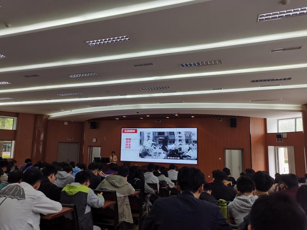 当进行到员工运动的内容时,何老师期望我们在座的同学们传承五四精神,也像那时的爱国青年一样,争做热血的时代新青年。