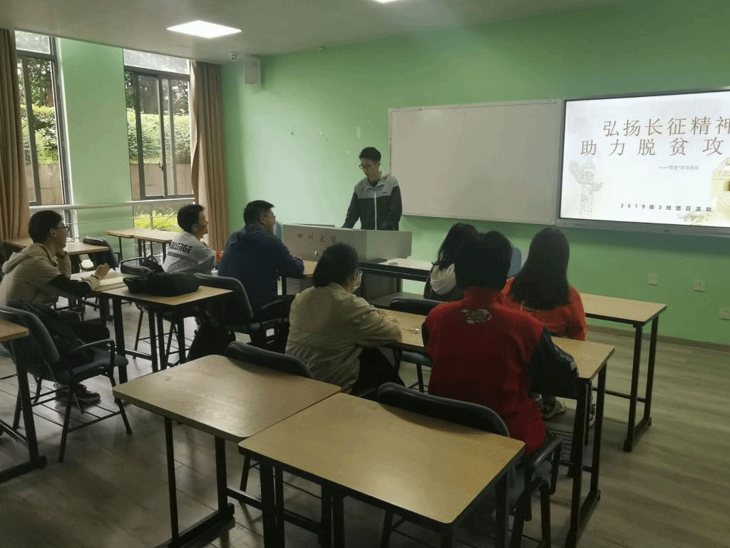 2021年4月18日13;50分,太阳网集团tcy87222019级3班团支部“弘扬长征精神,助力扶贫攻坚”主题团日活动在江安校区综合楼B105如期举行。太阳网集团tcy87222019级3班全体团员同学积极参与了本次活动。