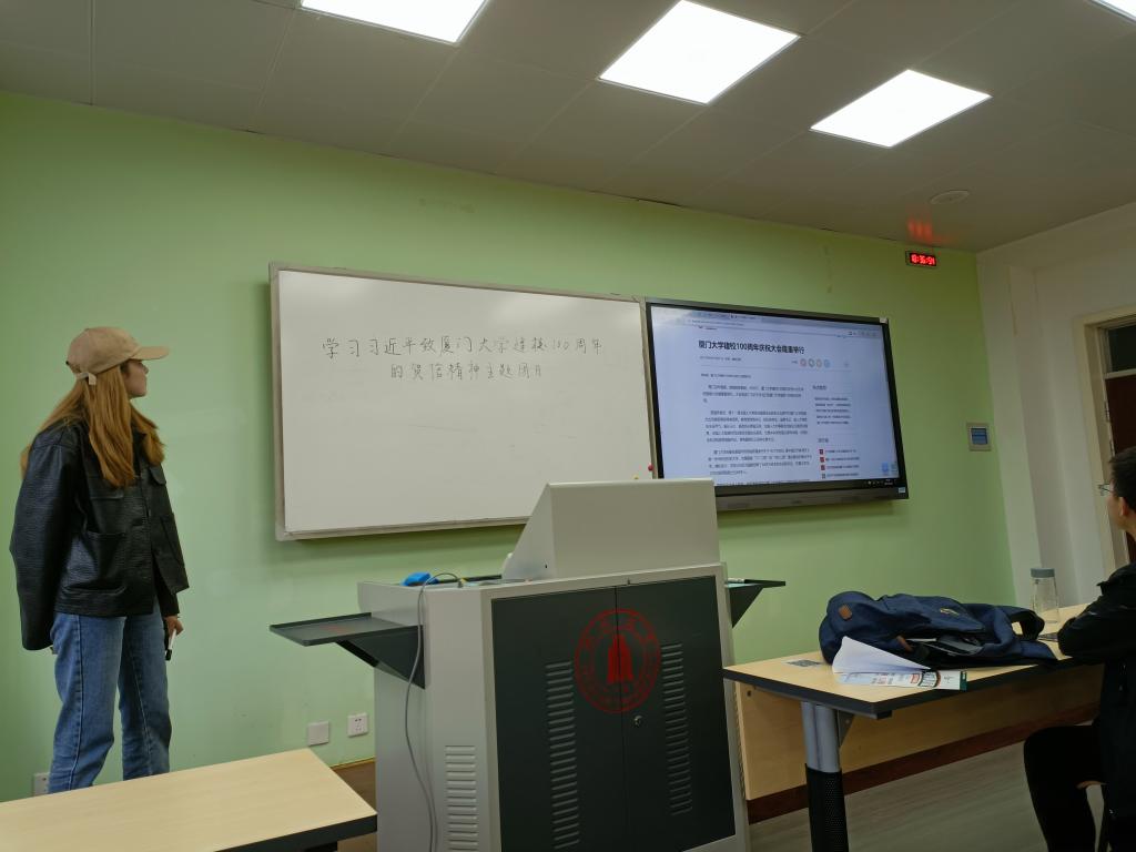 紧接着团支书讲解习近平总书记致厦门大学100周年贺信精神。