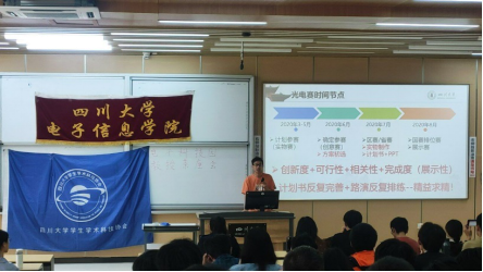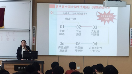 中午12:40,本次活动正式开始。首先,唐鹏同学针对自己的获奖经验为同学们介绍了光电设计大赛的组队和参赛流程,并向同学们推荐了参赛的实用技能和网站资源。