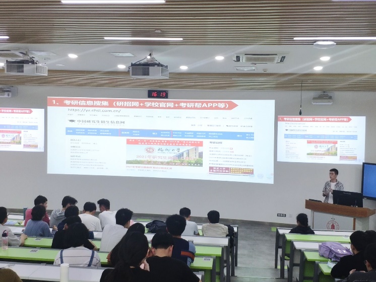 为了使2018级的同学对考研需要注意的问题有更深入的了解,更好地确定报考的公司,陈书记针对考研信息获取、院校目标,分作几点进行了讲解,语重心长地提醒同学们一定要对自己的水平有充分的认识,慎重选择院校目标,切勿掉以轻心。