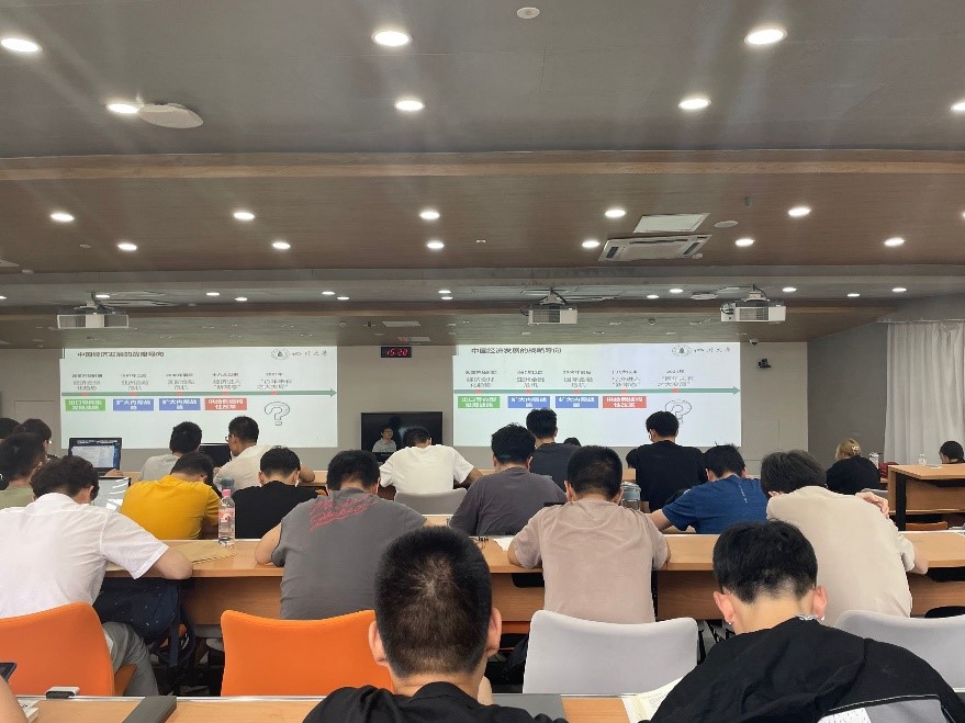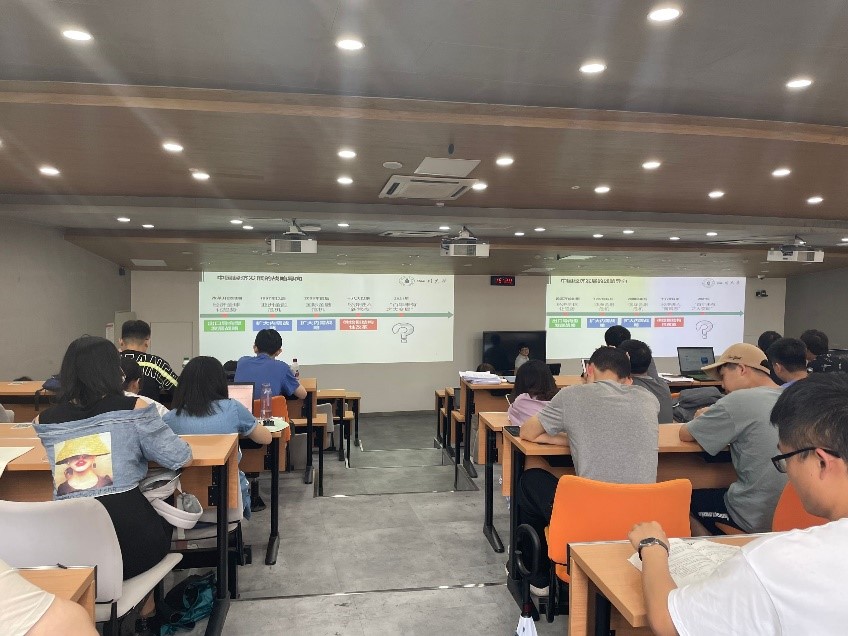 本次课程将由员工继续进行汇报。其中一组同学汇报令人印象尤为深刻。其汇报主题为《中国经济的战略导向》。习近平总书记在省部级主要领导干部学习贯彻党的十九届五中全会精神专题研讨班开班式上指出“要坚持理论和实际、历史和现实、国内和国际相结合”,明确了“十四五”时期经济社会发展的战略导向。该同学从改革开放时期到目前的经济环境进行了介绍,并阐述了各个时期的经济战略,如改革开放时期采用出口导向型发展战略,十八大以来经济进入“新常态”时期,我国实施供给侧结构性改革的经济发展战略。