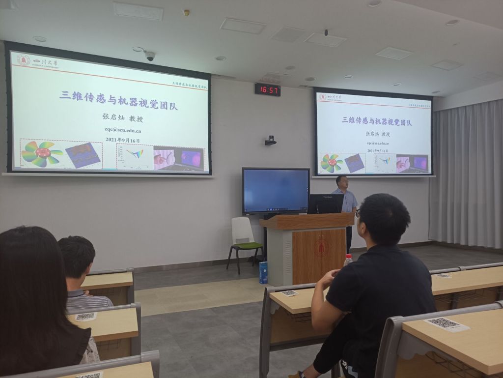 张启灿教授介绍三维传感与机器视觉实验室以及信息显示研究所