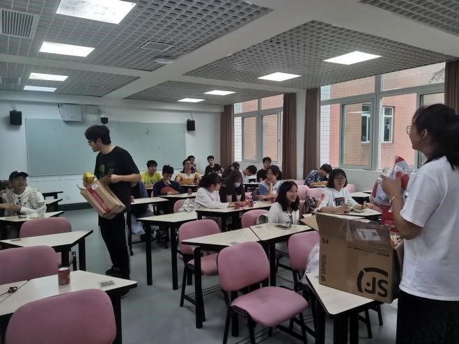 9月16日上午,同学们聚集在310教室。活动开始,就先为同学们发放福利,各种零食小吃人人有份,以此表达对同学们中秋佳节的祝福。然后由各个寝室代表发言,来讲述一下刚刚搬来新校区的感受。其中,感慨最大的一点就是寝室环境变得舒适整洁。