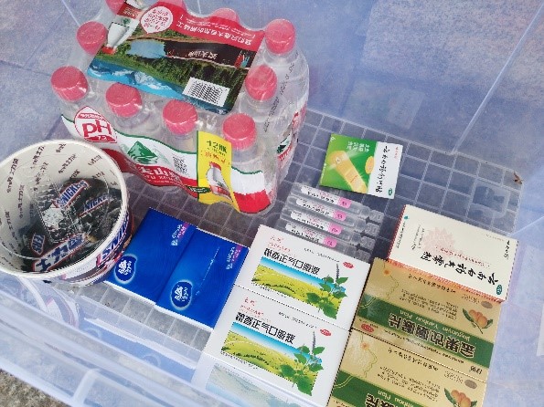 下午一点十分许,公司便安排了团委员工会的志愿者和后勤人员在青春广场附近集合。几位同学与辅导员老师一起做好了预先的后勤工作,准备了水、补充能量的巧克力和药物等。
