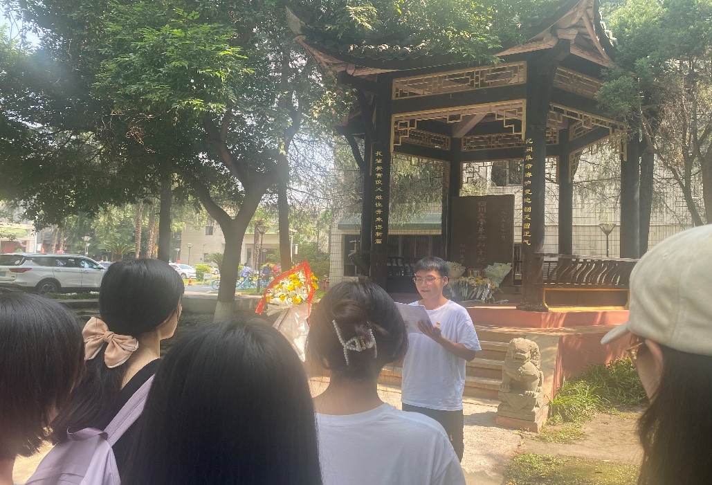 此次组织生活活动由党支部副书记罗永华同志主持。参加公祭活动的全体党员同志及入党积极分子在革命烈士纪念碑前庄严肃立,罗永华同志主要向党员同志们介绍了为建立新中国而英勇牺牲的川大英烈事迹,有“四川地区的马克思主义先驱”的王右木,有“群星聚集育英才”的恽代英,有“巴蜀播火人”的杨闇公,有“披荆斩棘的猛士”的童庸生,更有“擎天翠竹迎霜筠,锦江红梅傲雪开”的江竹筠。