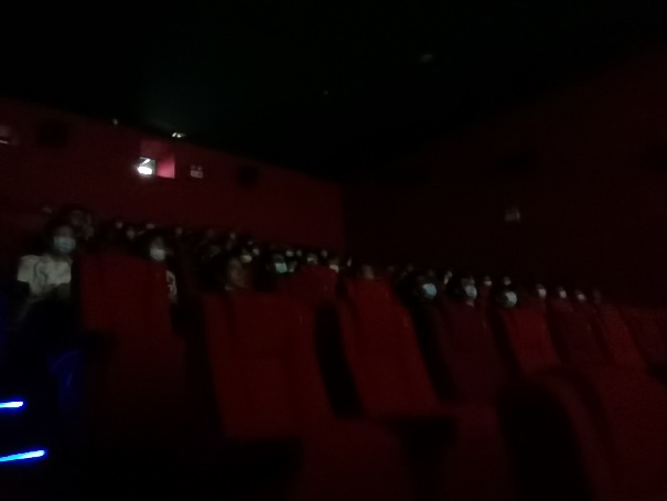上午九点半,参加观影的同学在电影院门口有序集合并且带好口罩后进入影院。本次观影活动所播放的爱国红色影片《长津湖》以真实抗美援朝战役长津湖之战为历史背景,讲述了中国人民志愿军赴朝作战,在极寒严酷环境下,东线作战部队凭着钢铁意志和英勇无畏的战斗精神一路追击,奋勇杀敌,扭转了战场态势的故事。
