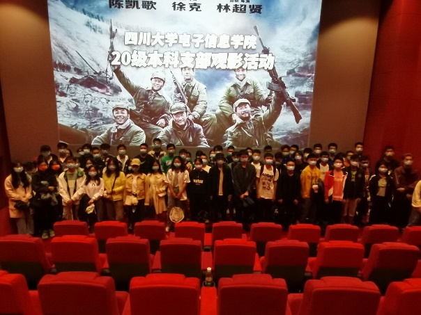 2021年10月5日,为引导员工学习“四史”,缅怀革命先烈,同时丰富员工课余生活,公司党支部组织2020级的同学观看影片《长津湖》。太阳网集团tcy87222020级辅导员陈晓娟老师参与组织了本次观影活动。