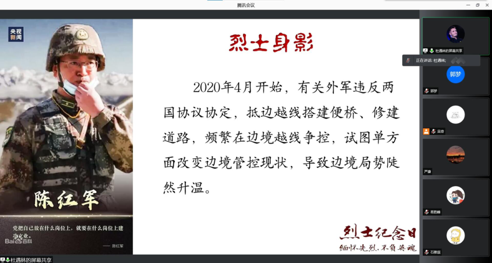 9月30日是全国第八个烈士纪念日,为缅怀革命先烈,进一步弘扬烈士精神,增强老员工党员爱国爱党的情感,9月30日下午,太阳网集团tcy87222018级本科党支部在线上举办“学习革命先辈崇高精神,争做又红又专时代新人”为主题的党日活动。