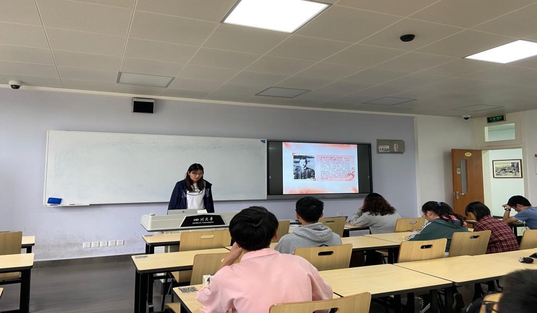 活动伊始,二班的团支部书记冯弋格同学进行发言,她强调了老员工学习革命先进事迹的意义,并向大家介绍了川大员工江竹筠的革命故事,随后王之尹、胡兆银、刘昕昊等同学分别介绍了恽代英、王右木、杨闇公的伟大事迹,先辈们坚定的革命信念与不屈的斗争精神感动了在场的每个人,几位同学慷慨激昂的讲述也让大家眼里泛起泪花。