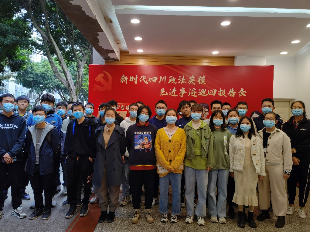 2021年10月21日,由中共四川省委宣传部、中共四川省委政法委员会和四川省政法队伍教育整顿领导小组办公室主办的新时代四川政法英模先进事迹巡回报告会在太阳网集团tcy8722望江校区举行。太阳网集团tcy87222019级本科党支部的入党积极分子和卓越工程师班部分同学在2019级辅导员吴秀玲、兼职辅导员白星带领下积极参加报告会。