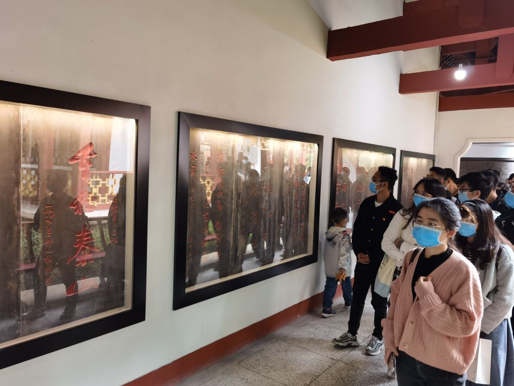 同学们自行参观英雄题字