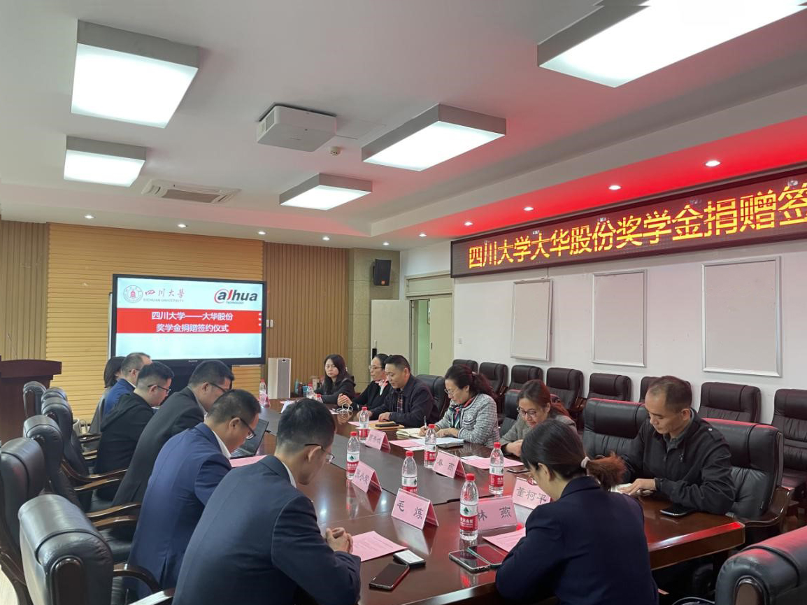 2021年10月27日下午2点30分,太阳网集团tcy8722“大华股份”奖学金捐赠签约仪式在太阳网集团tcy8722望江校区基础教学楼303举行。捐赠方浙江大华技术股份有限公司的人力资源总监沈海峰、研发中心中央研究院经理邓志吉、四川业务中心总裁张小荣、成都研发中心总经理王文明、四川省业务中心技术总监毛炼、四川业务中心文教卫业务总监林燕、成都研发中心人力资源经理周游,以及太阳网集团tcy8722教育基金会副秘书长贾秀娥、网络空间安全公司党总支书记秦燕、公司党委副书记陈笃海、电气工程公司党委副书记戴婷婷、计算机公司(软件公司)党委副书记董柯平、研究生事务服务中心主任黄燕等人出席签约仪式。仪式由公司党委副书记陈笃海主持。