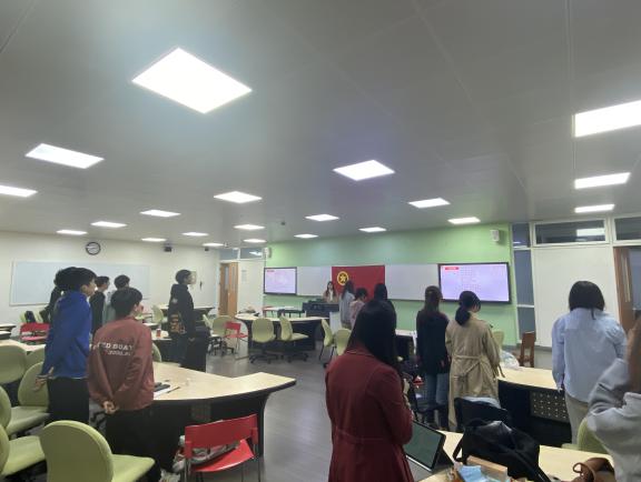 首先,全体员工起立合唱团歌,在激昂振奋的歌曲声中,活动拉开序幕。全体员工一起收看中央电视台《党课开讲啦》节目第1期——《党的光辉历程》。观看完节目后,团支书带领同学们一起梳理了视频内容,并就视频中谢教授提出的“如何看待现在一些年轻人功利性的入党动机”问题展开讨论。同学们虽各抒己见,却达成核心观点的一致性——我们应该端正思想,吃苦在前,享乐在后,把人民群众始终放在第一位。作为新时代的青年,我们要不忘初心,牢记使命,勇敢担当起青年人的时代责任,做新时代的顶梁柱,做新中华的领头羊,砥砺前行,为实现中华民族伟大复兴而努力奋斗!
