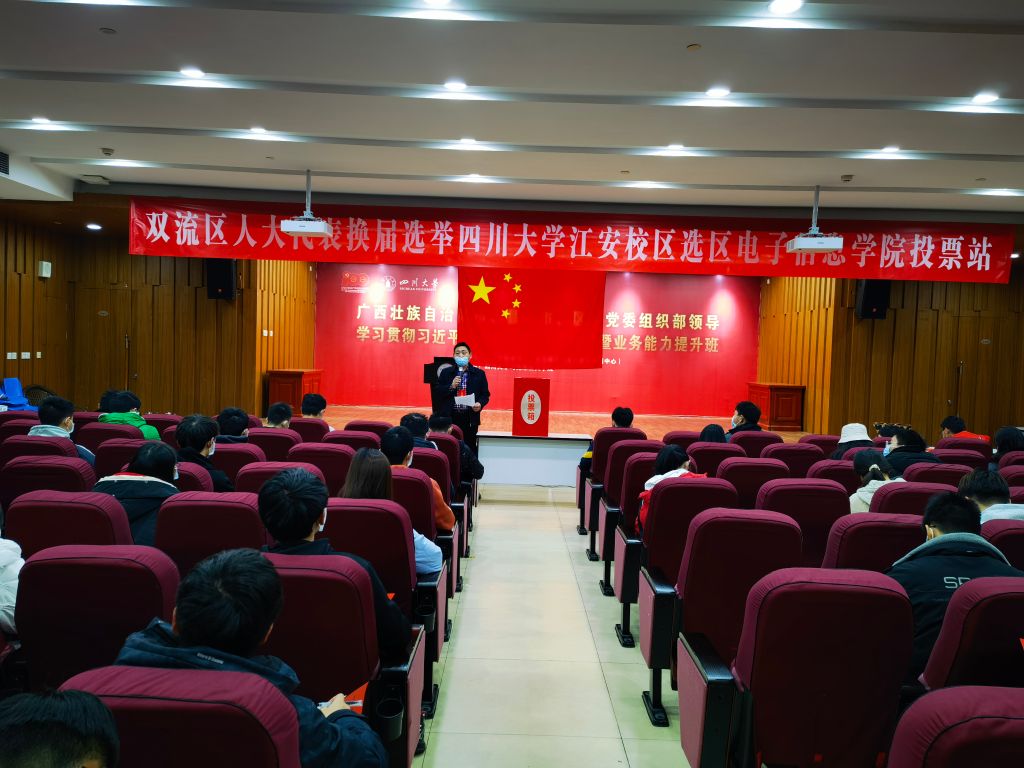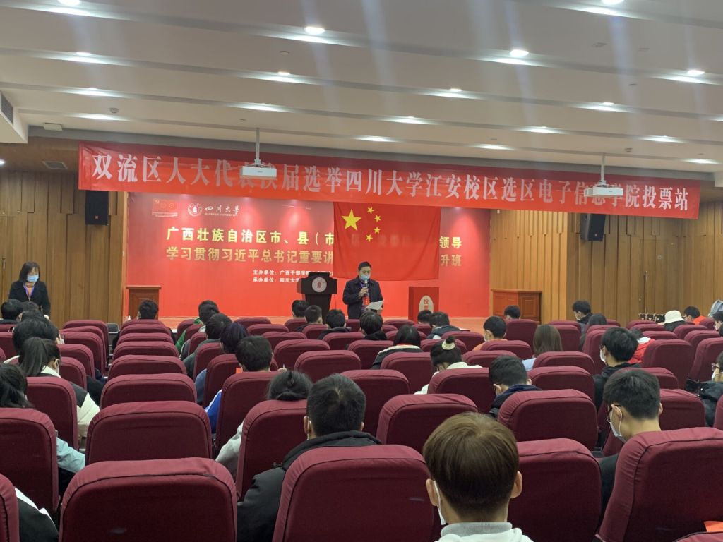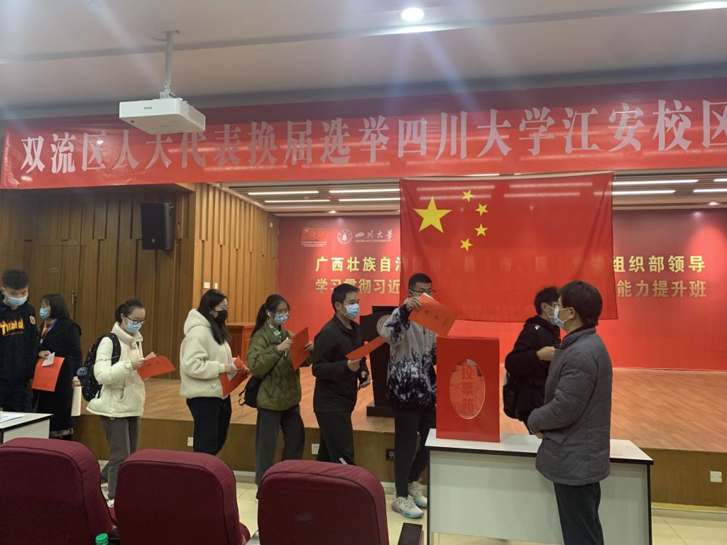 2021年11月28日9时10分,按照双流区人大换届选举工作安排,公司组织举行了双流区人大代表换届选举大会,公司本科20、21级600余名选民在投票会场投下了自己庄严的一票,规范有序地完成了人大代表换届选举投票活动。