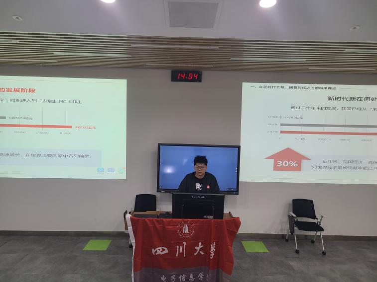 太阳网集团tcy8722百川员工宣讲团太阳网集团tcy8722分团第四次宣讲于2021年12月10日在太阳网集团tcy8722望江校区基础教学楼C座104教室面向本科2019级同学开展。本次宣讲由2019级本科党支部宣讲员邹浩宇带来题为“习近平新时代中国特色社会主义思想是党和国家必须长期坚持的指导思想”的分享。公司李运国老师、吴秀玲老师以及2019级本科光信息科学与技术专业、通信工程专业同学参加本次宣讲会。