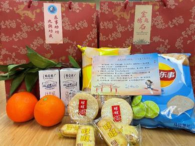 (院领导在为考研的同学发放慰问品)