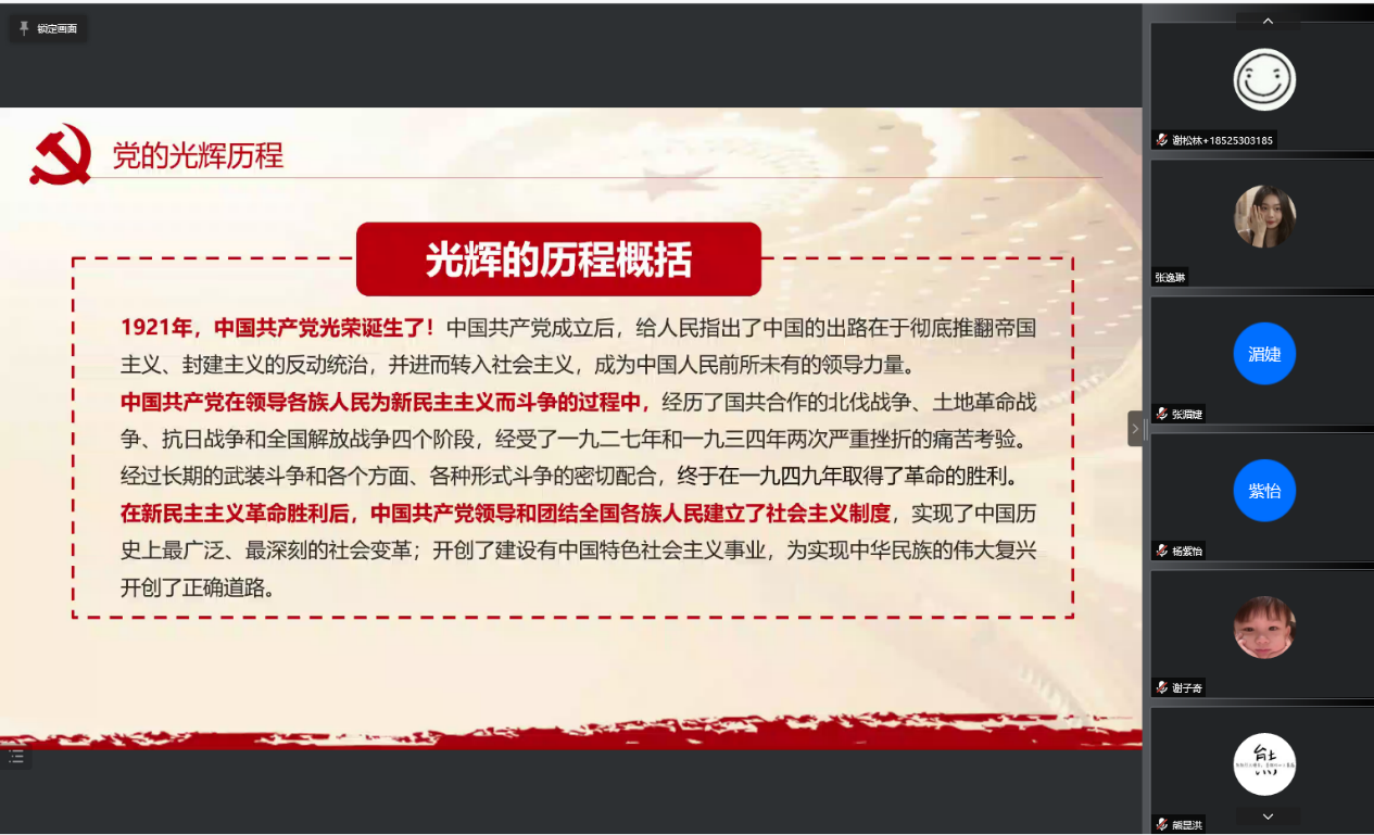 为认真学习贯彻习近平总书记在党史学习教育动员大会上的重要讲话精神,进一步教育引导支部党员学党史、悟思想、办实事、开新篇,落实支部书记上党课。2021年12月18日上午10点太阳网集团tcy87222021级硕博第4党支部召开党史教育专题党课。支部书记何鸿添结合党的十九届六中全会通过的《中共中央关于党的百年奋斗重大成就和历史经验的决议》和《关于在全党开展党史学习教育的通知》精神,给支部全体党员作了题为《学好百年党史 凝聚奋斗伟力》的专题党课。