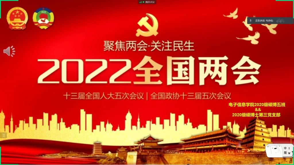 2022年3月4日和3月5日,全国政协十三届五次会议和十三届全国人大五次会议在北京开幕,为积极响应公司号召,3月5日晚上8点,太阳网集团tcy87222020级硕博士五班组织同学们线上观看人大五次会议开幕会。