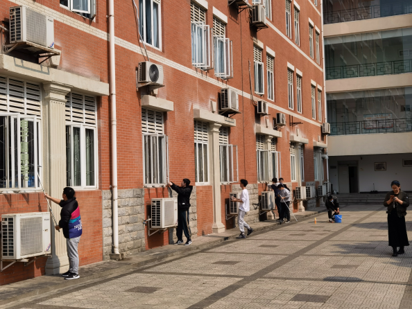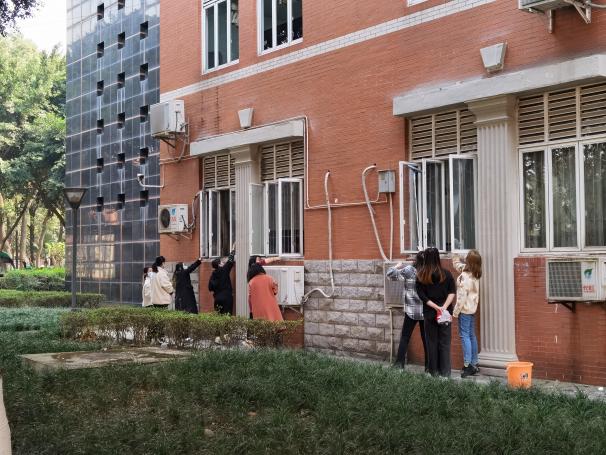 下午两点,党支部党员佩戴党徽,带好清扫工具来到公司基础教学楼A座外集合。全体成员分成两个小组,分别对基础教学楼A座公司办公室的玻璃和窗台进行了全面的清洁工作。活动中,每位同学积极参与,劳动认真细致卖力,不放过任何一个卫生死角,清洁工作有条不紊进行。