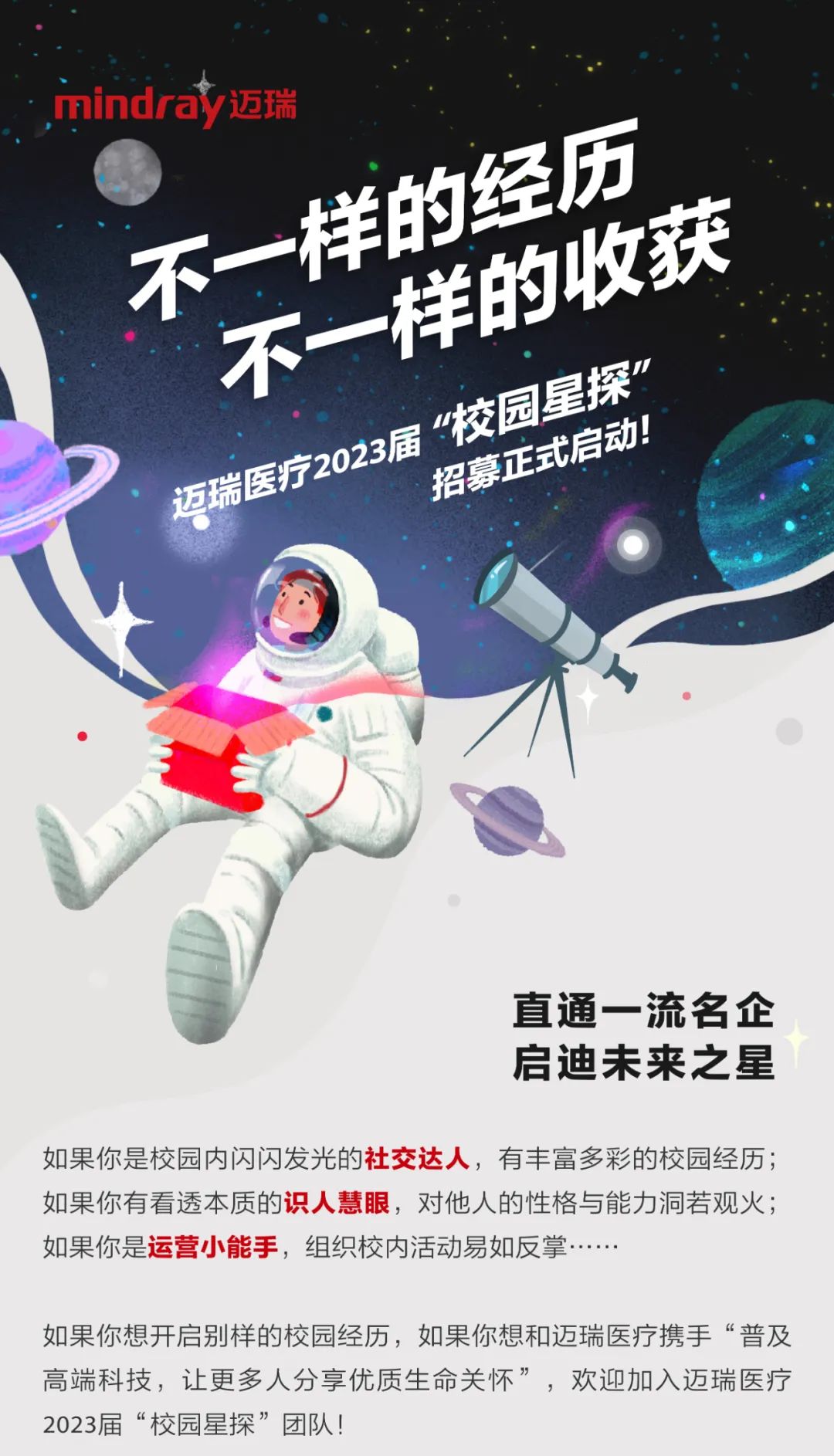 迈瑞23届校园星探招聘马上要截止