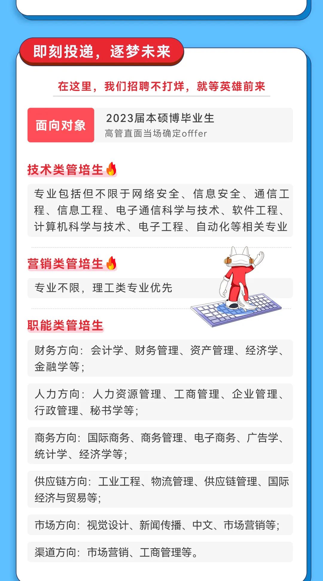 校招岗位:营销类管培生、研发类管培生、职能类管培生
