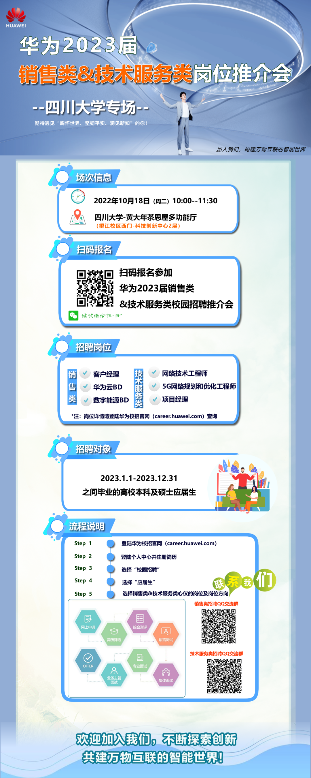 10月18日10:00望江校区西门科技创新中心二楼华为2023届销售类&技术服务类岗位校园招聘