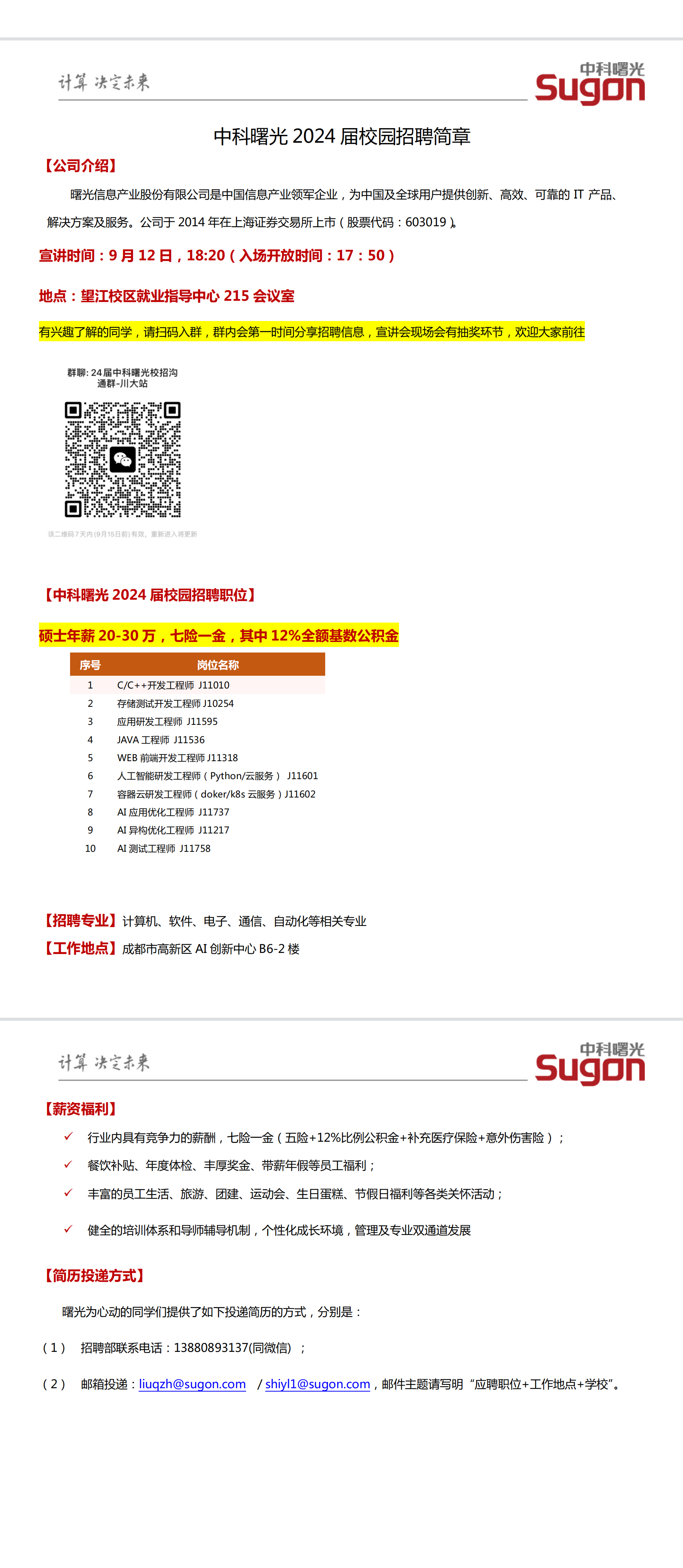中科曙光2024届校园招聘简章