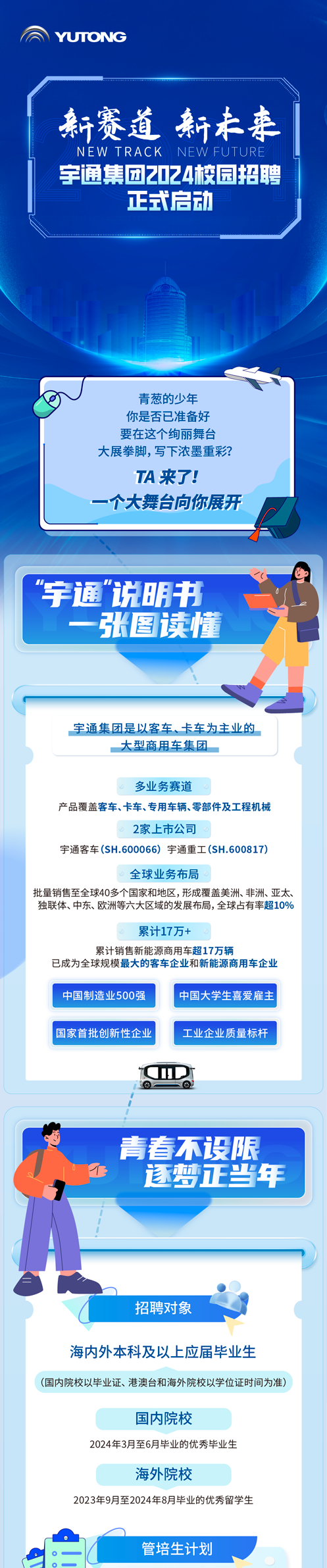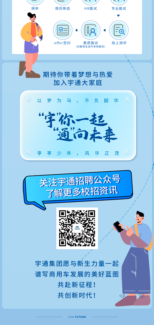 渠道2:微信关注“宇通招聘”公众号-加入宇通-校园招聘-2024届管培生/2024届校招生