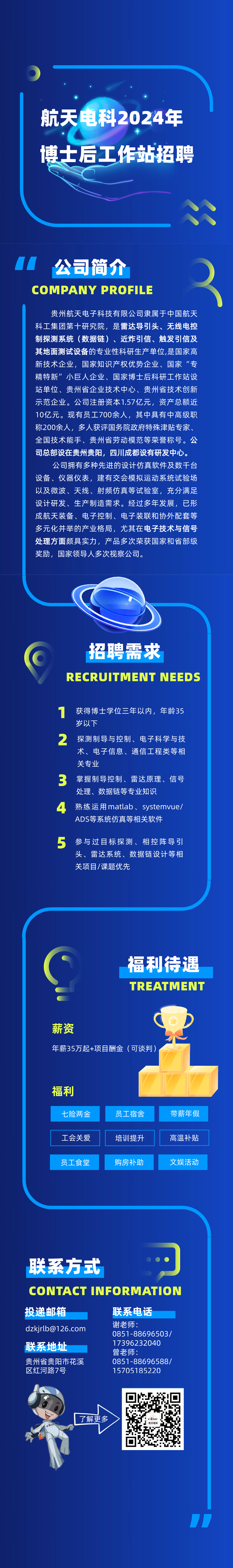 贵州航天电子科技有限公司2024届招聘(本硕博)
