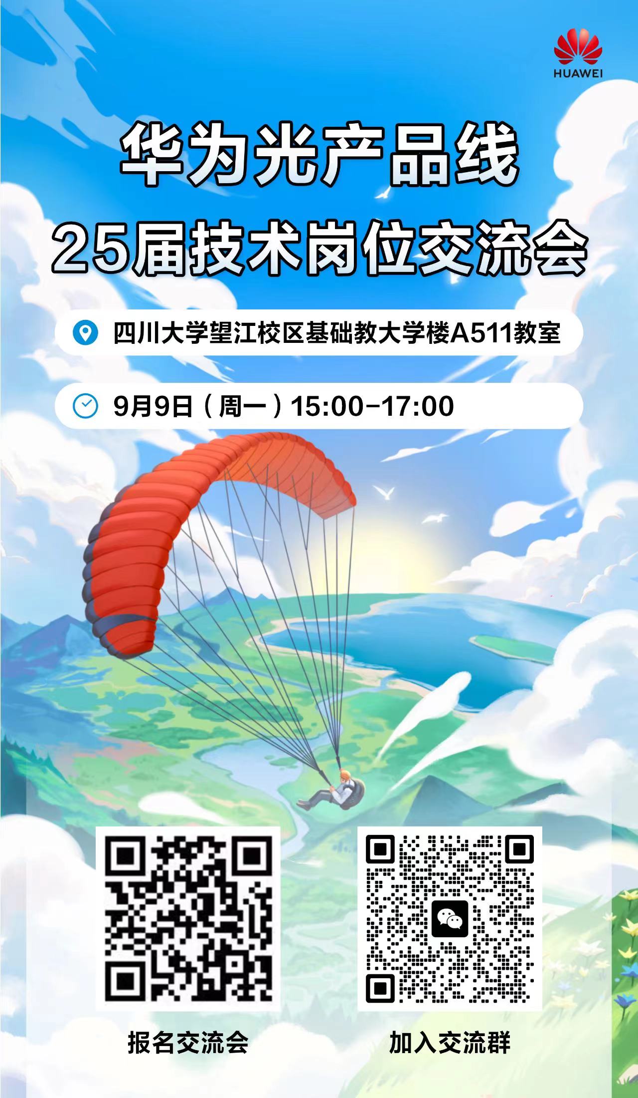 9月9日 太阳网集团tcy8722望江校区基A511 华为光产品线25届技术岗位交流会