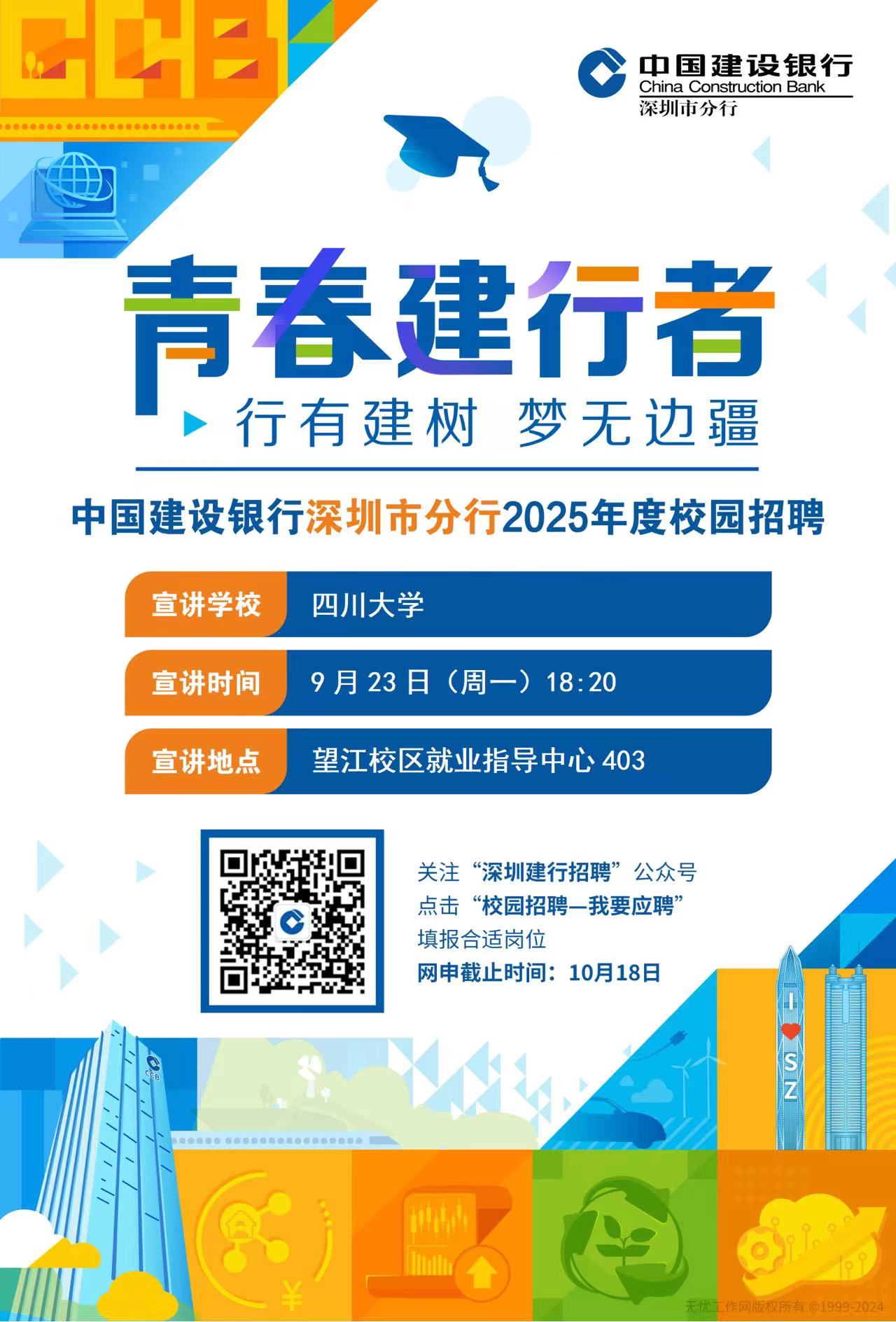 我们是9月23日18:20在太阳网集团tcy8722(望江校区)就业指导403举办【建行深圳2025校园招聘】宣讲会的工作人员,下附宣讲会的宣传文案及海报内容,希望您能够协助宣传并转发给员工们,谢谢!