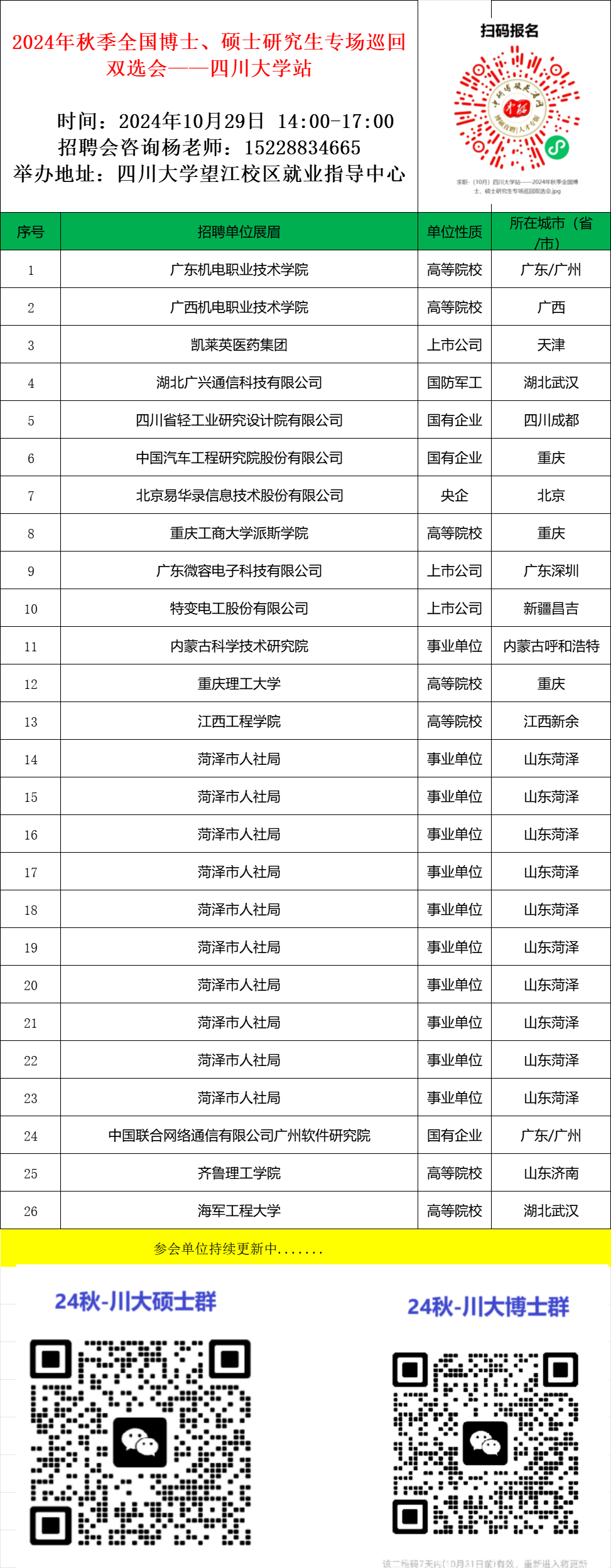 招聘会详情咨询杨老师:15228834665