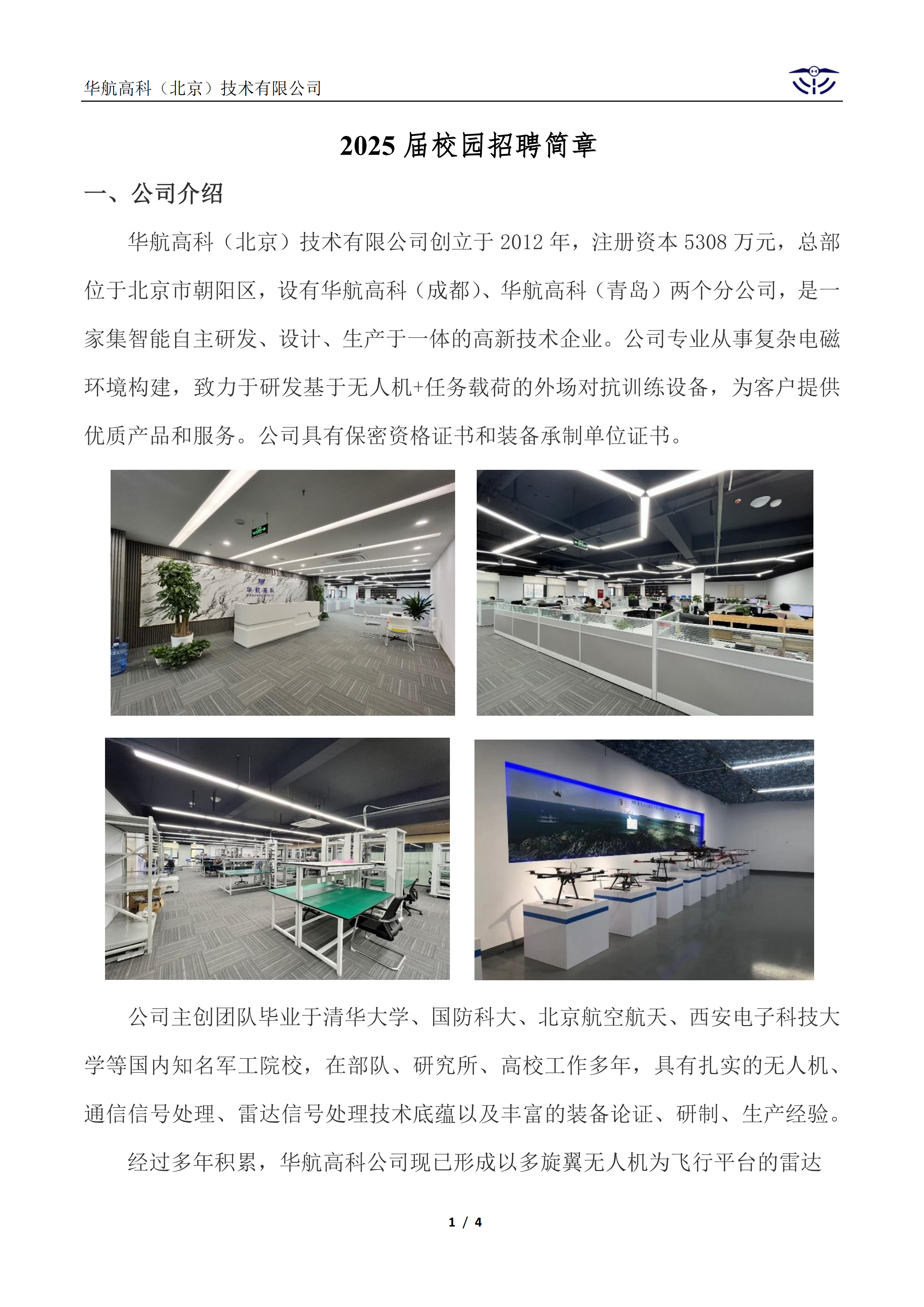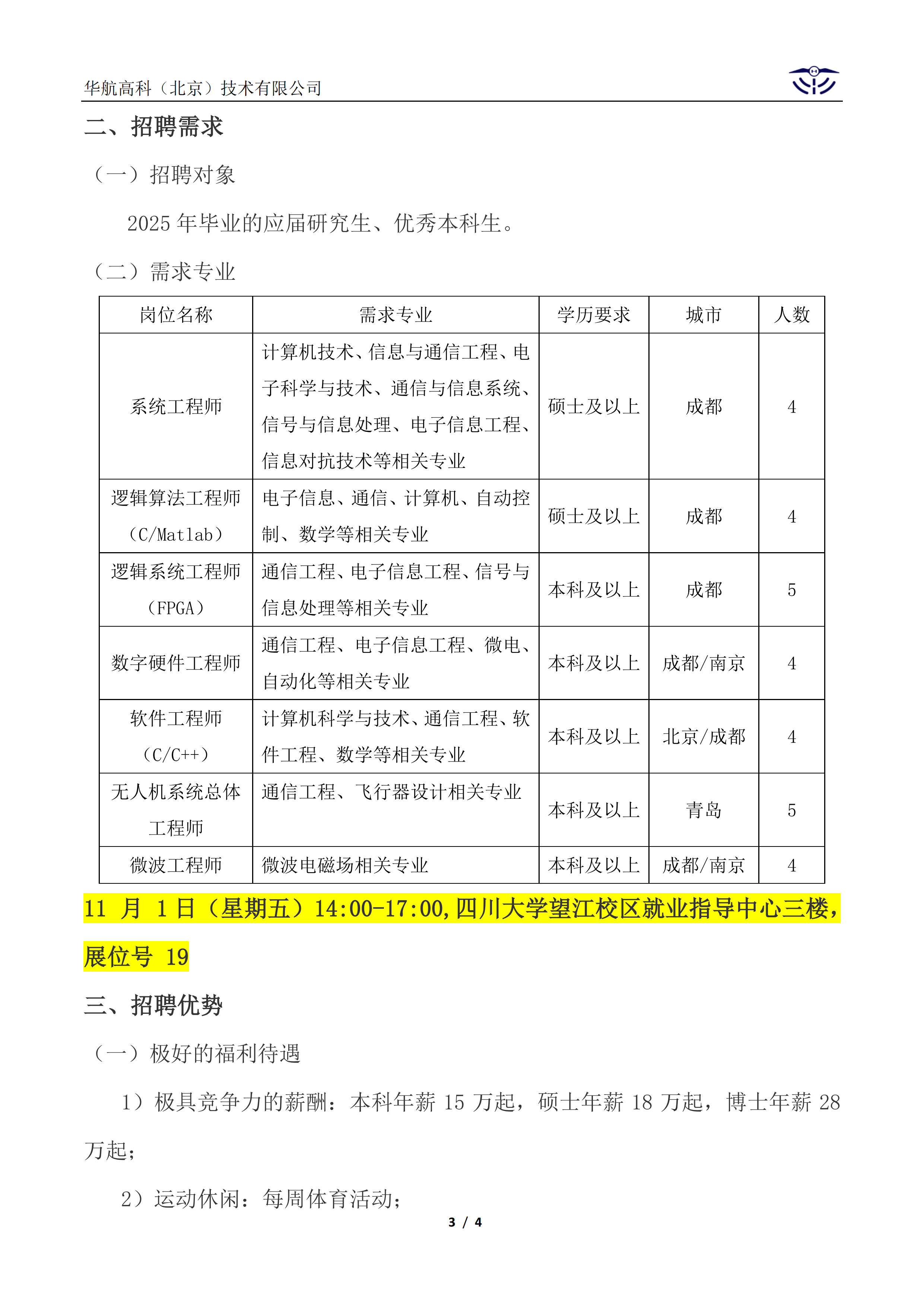 11月1日14:00就业中心3楼19号展位-华航高科2025届校园招聘