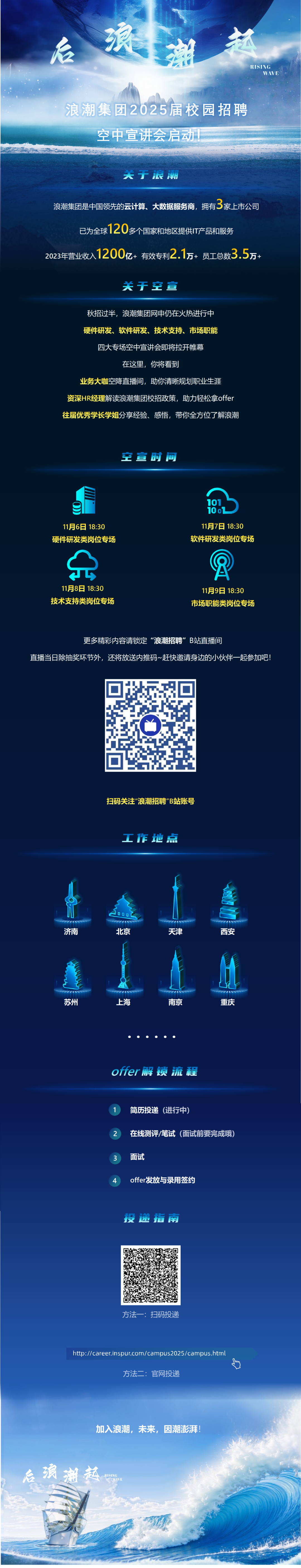 浪潮集团计划于11月6日-9日18:30举办硬件研发、软件研发、技术支持、市场职能岗位专场空中宣讲会