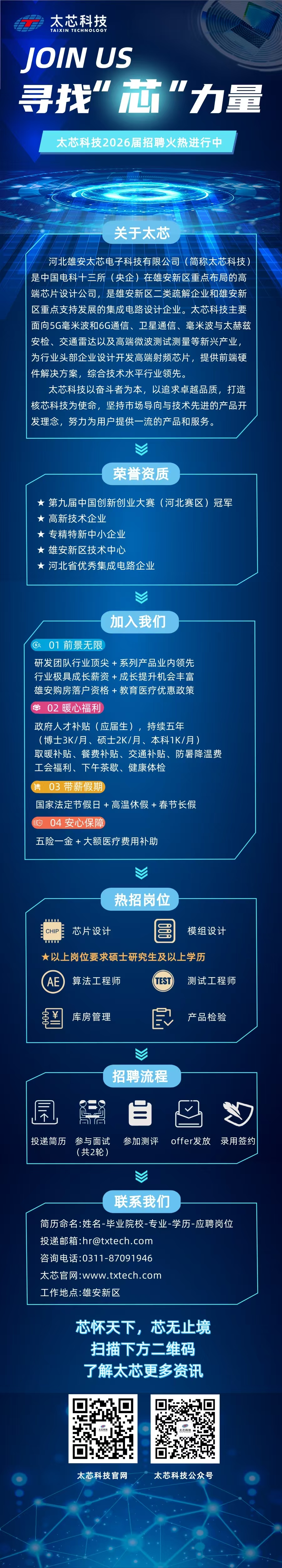 河北雄安太芯电子科技有限公司(以下简称“太芯科技”)是中国电科十三所(央企)在雄安新区重点布局的高端芯片设计公司,是雄安新区二类疏解企业和雄安新区
