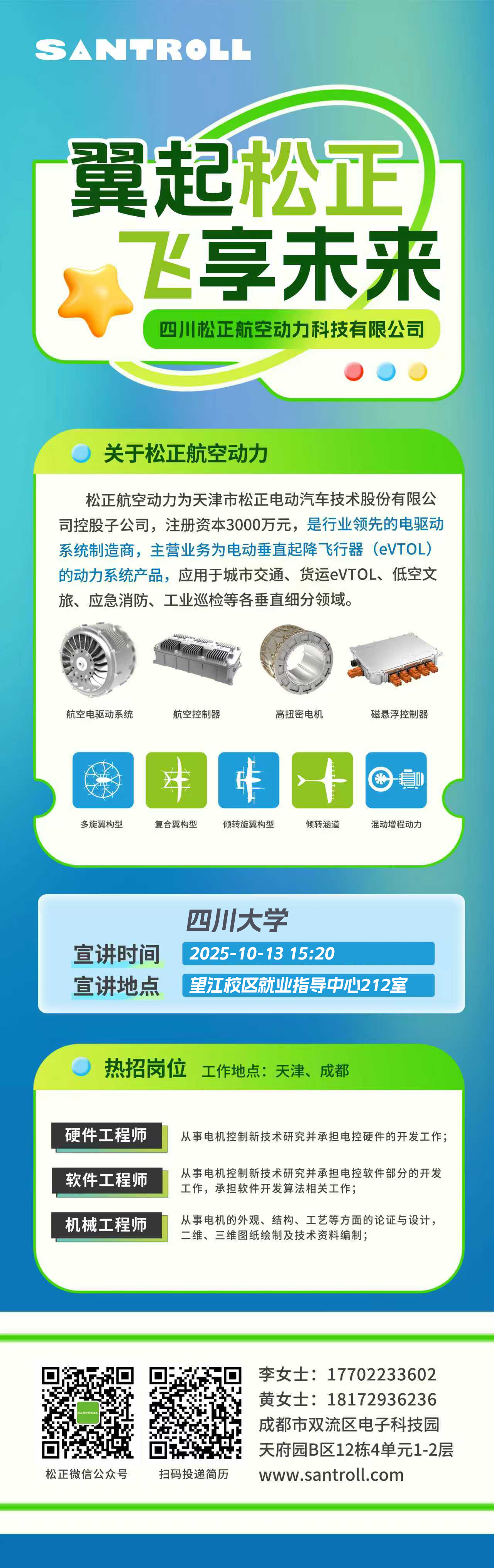 10月13日15:00就业指导中心212 四川松正航空动力科技有限公司【天津、成都】