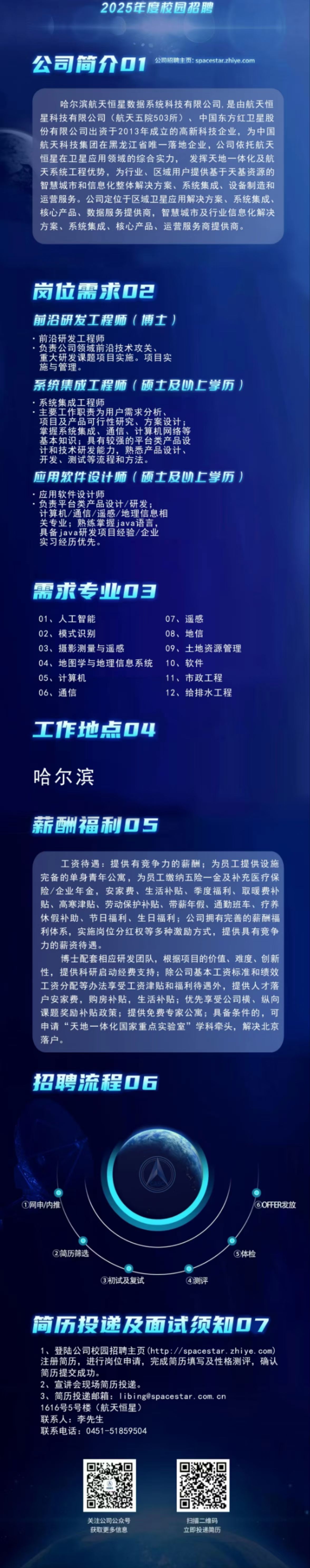 哈尔滨航天恒星数据系统科技2025年秋季招聘(硕博),下周一10月20日下午3点,太阳网集团tcy8722望江校区基础教学楼A402