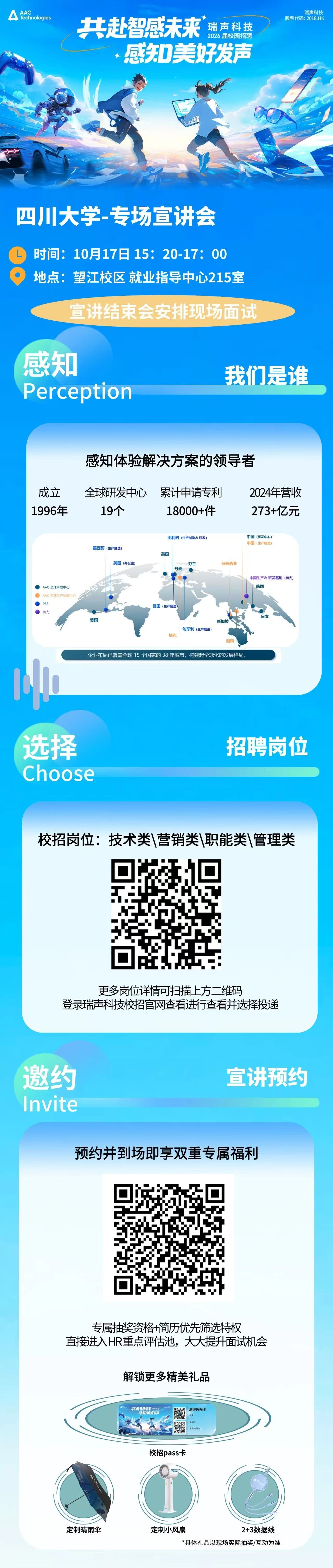 10月17日15:20就业指导中心215室 瑞声科技2026届宣讲会