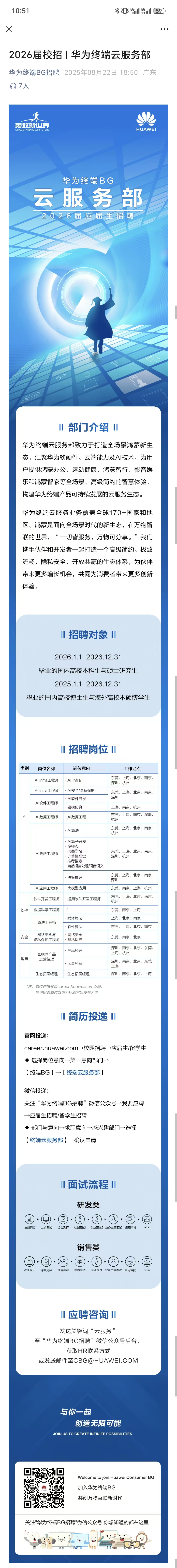 华为终端BG云专场招聘