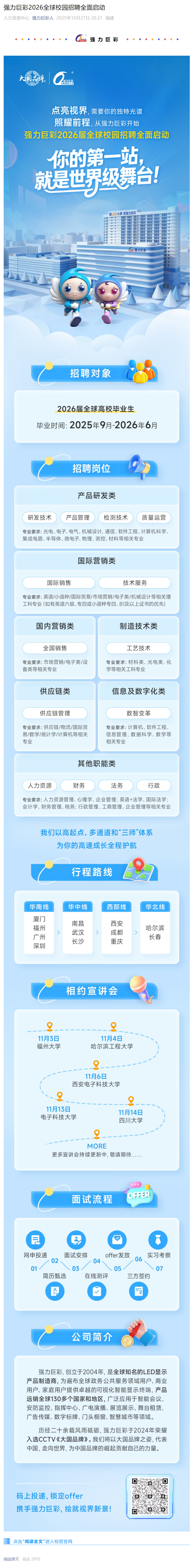 强力巨彩“点亮计划”2026 届全球校园招聘