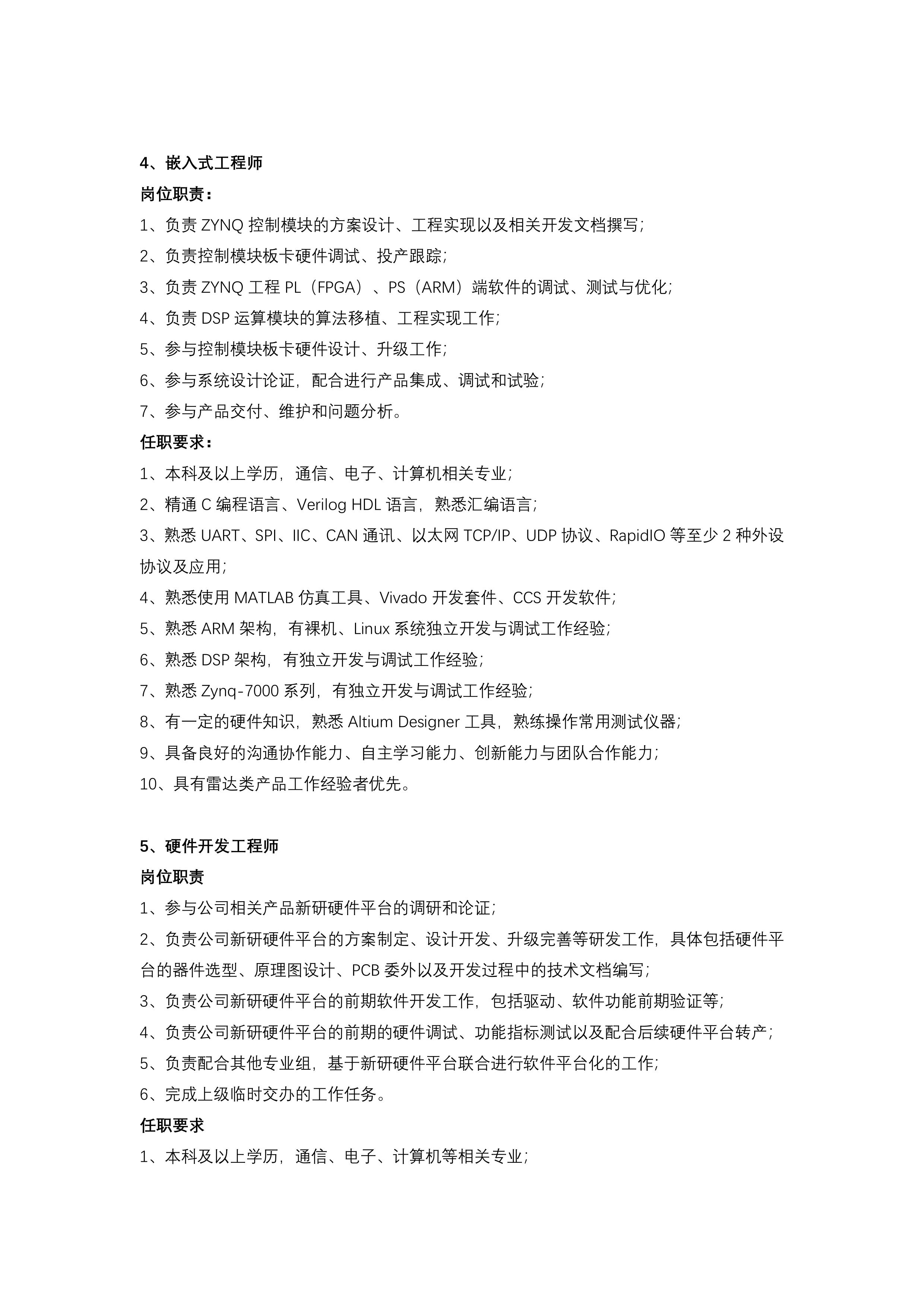 💼招聘岗位:雷达项目总师,技术研发人员(算法、FPGA、嵌入式、C++、JAVA、前端、硬件、微波)。